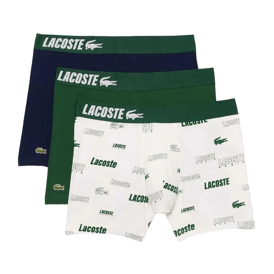 Set 3 Quần Lót Nam Lacoste Stretch Cotton Print Boxer Briefs 3-Pack 6H8708 YVC Màu Xanh Phối Trắng Size S