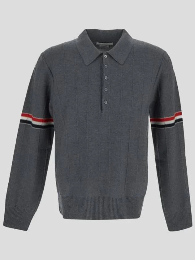Áo Polo Nam Thom Browne Ribbed Short-Sleeve Polo Shirt Màu Xám Size 1
